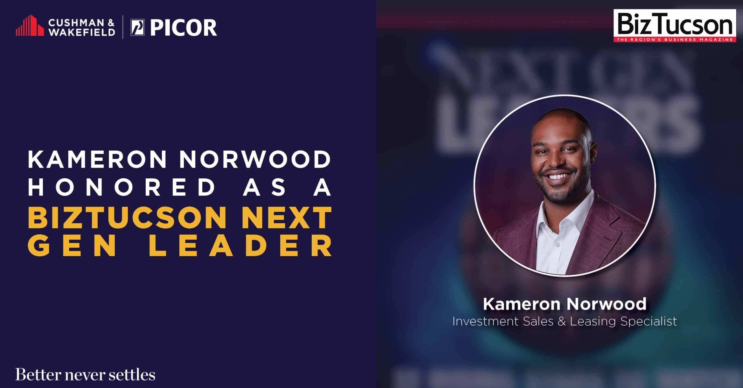 Cushman & Wakefield | PICOR joins in honoring Kameron Norwood, Investment Sales & Leasing Specialist, as a BizTucson 2026 Next…